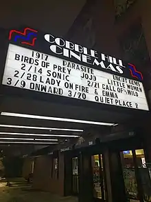 A Brooklyn cinema announcing its showings in February 2020; A Quiet Place Part II's release was subsequently postponed.