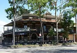 The Imperial Hotel was built as two storeys in 1890 to cater for the crowds who arrived by train to attend the greyhound racing at Plumpton.[2] F. J. Weston of Horsley Park developed the hotel that was opened on 12 August 1890. At the time Rooty Hill was part of the St. Mary's Parish. The locality was identified on maps as early as 1803 and known by the name of Rooty Hill by 1810.[1]