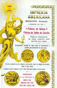 When World War I started in 1914, the newspaper El Fonógrafo was published in the workshops of Imprenta Americana. Unlike other Venezuelan newspapers of the time El Fonógrafo sympathized with the Allies.[5]