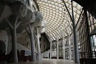 Makovecz was one of the most prominent proponents of organic architecture. As such, his buildings attempt to work with the natural surroundings rather than triumph over them. Frank Lloyd Wright and Rudolf Steiner are both strong influences, as is traditional Hungarian art.[1]
