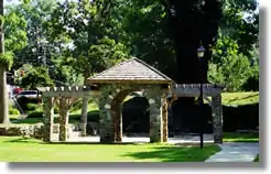 In June 1931 a group of Girl Scouts from Charlotte was visiting Glen Burney Falls in Blowing Rock, North Carolina. One girl fell into the falls, and 21-year-old counselor Lillian Arhelger lost her life when she jumped in to save her. A memorial to the fallen hero was erected, and today the bronze and stone Lillian Arhelger Memorial, with its reflecting pool, is a prominent feature in the upper half of Independence Park.[5]