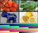 Here is a typical indexed 256-color image and its own palette (shown as a rectangle of swatches):