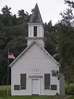 Indian Castle Church is a historic mission church at Indian Castle in Herkimer County, New York. The church is located on NYS Route 5S near present-day Danube. It is a one-story, rectangular wood-frame structure, clad in clapboard with a gable roof and steeple. To the rear of the church is a burial ground containing the remains of both Mohawks and Europeans.