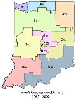 As of 2022, Indiana's 5th congressional district is located in central Indiana. It includes Delaware, Grant, Hamilton, Howard, Madison, and Tipton Counties.