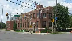 The Indiana Oxygen Company Building is a historic industrial building located at Indianapolis, Indiana. It was built in 1930, and consists of a two-story, rectangular main building on a raised basement, with an attached one-story, U-shaped warehouse. Both building are constructed of brick. The main building features applied Art Deco style limestone and metal decoration.[2]: 2–3