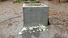 Base of the memorial to Abraham Lincoln after the statue was toppled