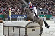 Indoor cross country is a relatively new test of equestrian skills. It involves the use of both show jumping-type obstacles and cross country-type obstacles (including banks, water, logs, and brush fences) in a course of an indoor arena.