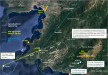 Fig. 2 JP1308 flight pattern - a derivative graphic created from publicly available information and put on Google Earth map as a background.