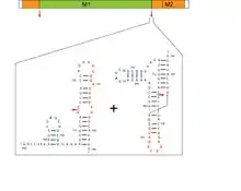 - ↑ Moss WN, Dela-Moss LI, Kierzek E, Kierzek R, Priore SF, Turner DH (March 2012). "The 3′ Splice Site of Influenza A Segment 7 mRNA Can Exist in Two Conformations: A Pseudoknot and a Hairpin". PLOS ONE. 7 (6): e38323. Bibcode:2012PLoSO...738323M. doi:10.1371/journal.pone.0038323. PMC 3369869. PMID 22685560.