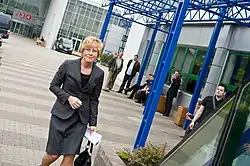 In 2009, Šimonytė was nominated to serve as finance minister in the second cabinet of prime minister Andrius Kubilius, replacing Algirdas Šemeta who had stepped down to become European Commissioner for Budget and Administration. Following her nomination, she was appointed by President Valdas Adamkus to serve in the office. Upon taking office, Šimonytė was tasked with recovering the Lithuanian economy in the aftermath of the Great Recession, with Lithuania's gross domestic product (GDP) having dipped 14.7% in 2009.[3][4] While in the position, Šimonytė became one of the faces of the austerity drive implemented by the government in order to improve the Lithuanian economy.[5]