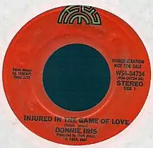 "Injured in the Game of Love" is a song by American rock musician Donnie Iris, released in 1985 as the lead single from his fifth studio album No Muss...No Fuss. The song reached number 91 on the US Billboard Hot 100 chart and number 28 on the US Billboard Mainstream Rock chart.
