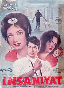 Insaniyat (transl.humanity) is a 1967 Pakistani Urdu language black-and-white film produced by A. Hameed, directed by Shabab Kiranvi who also wrote the screenplay. The film starred Waheed Murad, Zeba, Tariq Aziz, Firdous and Nanna.[1] The film revolves around a doctor, who has to treat the husband of his ex beloved, suffering from cancer.[2]
