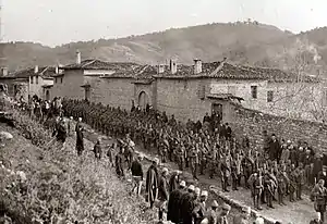 The International Gendarmerie was only one of numerous armed groups in the principality during Wilhelm's reign.[9] Others included irregular bands of southerners led by local leaders; native outlaws; Bulgarian outlaw Komitadjis; Greek rebels from the Northern Epirus; peasant rebels in central Albania; Essad Pasha's gendarmerie; volunteers from Kosovo led by Isa Boletini;[10] and Mirdita Catholic volunteers from the northern mountains under the command of Prênk Bibë Doda.[11]
