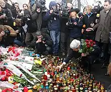 • Republican Party of Russia co-leader Boris Nemtsov said on behalf of his party on 2 December: "We support Ukraine's course toward European integration [...] By supporting Ukraine, we also support ourselves."[81] Four St. Petersburg regional branch representatives of the Republican Party of Russia – PFP visited Kyiv and joined Euromaidan protesters in Maidan Nezalezhnosti on 9 December because they "felt the emotional impulse to go there and back supporters of Ukraine's association agreement with the EU".[82]