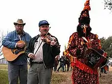 The annual Iota Mardi Gras Folklife Festival attracts thousands of tourists and visitors, offering authentic Cajun food, music and crafts. In contrast to the elaborate costumes and parades of urban Carnival krewes, in Iota and nearby rural communities like Tee Mamou and LeJeune Cove, Cajuns celebrate Courir de Mardi Gras. Disguised with masks, costumes, and conical hats called capuchons, the townspeople travel through the surrounding countryside, making merry while begging for money and gumbo ingredients. The gumbo is the centerpiece of a communal supper and dance, where the Mardi Gras riders sing the Chanson de Mardi Gras, an old Cajun French drinking and begging song, and then take off their masks to reveal, ostensibly for the first time that day, the identity of each rider.