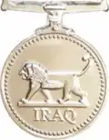 The Iraq Medal was instituted by Queen Elizabeth II, Queen of Australia on the advice of the Australian Prime Minister John Howard in 2004.[1] The Iraq Medal is awarded to Australian Defence Force (ADF) personnel who served in or around Iraq (19 March 2003 – 25 November 2013) during the Iraq War. ADF personnel are also recognised by the 'IRAQ 2003' clasp to the Australian Active Service Medal.
