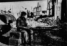 Soldier in the ruins of the Ministry of Defence in the aftermath of the Ramadan Revolution