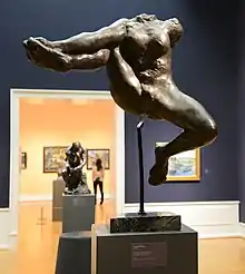 A 82.9 cm (32.6 in) high version, cast by Rudier in 1902-5, one of just seven known castings made during Rodin's lifetime, was sold for £11.57m at Sotheby's in 2016. It was sold from the collection of Sylvester Stallone, who had nicknamed it the "flying beaver". Stallone had acquired it at auction in 2007 for £4.6m, then a record for Rodin. Lucian Freud also owned a copy for many years, which he placed at the end of his bed, making it the first thing he saw in the morning.[3]