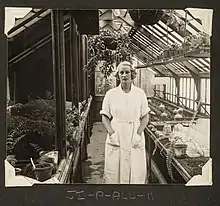Irma in her fern glasshouse at the John Innes Horticultural Institute