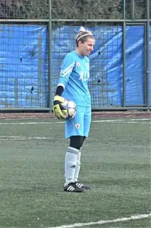 Iryna Pidkuiko (Ukrainian: Ірина Підкуйко, born 18 June 1989) is a Ukrainian women's football goalkeeper. She played in the Turkish Women's First Football League for ALG Spor with jersey number 22. She was part of the Ukraine women's national U-19 team.[1][2]