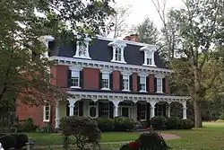 Built during the 1850s and remodeled in the 1870s, it is a two-story, six-bay, brick dwelling that was designed in the Second Empire style. It has a full width front porch, sits on a sandstone foundation and features a slate-covered mansard roof with dormers.[2]