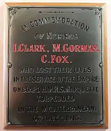 - 1 2 3 4 "Plaque to commemorate the Waimate Nurses who died during the sinking of the Marquette". New Zealand Museums. Archived from the original on 14 August 2016. Retrieved 27 June 2016.