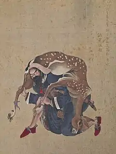 | Nochikusa (訥窒狐殺), chieftain of Shamo-kotan | with headband, tashiro sword, tobacco case, and pipe, he lifts aloft a deer | ![]() | ![]() |