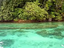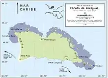 Isla Escudo de Veraguas is a small (4.3 km2) isolated Caribbean island of the Republic of Panama. Despite its name, it is not part of the province of Veraguas, but rather Bocas del Toro. Although located only 17 km from the coastline in the Golfo de los Mosquitos and isolated for only about 9000 years, several animals found on the island are distinct from their mainland counterparts, and two mammal species or subspecies are recognized as occurring only on the island: the fruit bat Dermanura watsoni incomitata and the sloth Bradypus pygmaeus (also known as the pygmy sloth). These two taxa and the worm salamander Oedipina maritima are all considered to be critically endangered due to their being unique to the small island.[1] Other mammals found on the island include the bats Glossophaga soricina, Micronycteris megalotis, Carollia brevicauda, Myotis riparius, and Saccopteryx leptura, the spiny rat Hoplomys gymnurus,[2] and the opossum Caluromys derbianus.[3] The island has 26.36 acres (10.67 ha) of mangrove forest (the only known habitat of the pygmy sloth) and 247 acres (100 ha) of coral reef with 55 coral species. It houses over 11,000 species, such as the pygmy sloth. The island has an average high temperature of 23 degrees Celsius and a low temperature of 12 degrees Celsius.