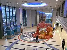 The complex also includes a three-floor shopping mall, a six-floor car park and a three-floor club house.[5] Facilities provided by the clubhouse include a library, gym room, BBQ area, band room, tennis courts, basketball court, 4 bowling ball lanes, badminton courts, music rooms, play room, snooker room, an indoor and outdoor swimming pool, a bar, a lounge, meeting rooms, study room, and a squash court.[5]