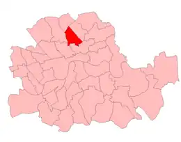 The Metropolitan Borough of Islington wards of Barnsbury, Lower Holloway, St Mary, St Peter, and Thornhill.[1]