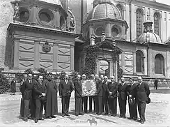 Israfil Israfilov (3rd from right) among Caucasian delegates before laying a wreath at the tomb of Marshal Jozef Pilsudski in Krakow, 1936