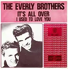 "It's All Over" is one of the few Everly Brothers songs to feature Phil Everly on lead vocals, with Don Everly doing the harmony.[1] The song also prominently features a harpsichord played by Don Randi. The single was only released in the US and the Netherlands, with the B-side "I Used to Love You", written by Sonny Curtis. It was scheduled for release in the UK in January 1966, but was never released.[2]