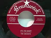 The Crickets recorded "It's So Easy!" for Brunswick Records, which released it as a 45-rpm single in 1958. It did not chart. The B-side was "Lonesome Tears". Tommy Allsup played the lead guitar parts on both recordings.