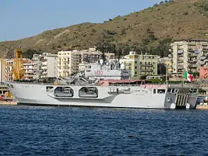 In mid-2006, the Italian Navy was one of the first to intervene in the Lebanon War.[1] Participating in Operation Mimosa '06 and subsequently in Operation Leonte with the San Giusto, San Marco and San Giorgio in the front row together with Aliseo, Luigi Durand de la Penne and the aircraft carrier Giuseppe Garibaldi. The ships landed in the port of Beirut, under the control of the 1st San Marco Regiment, tons of material intended for the population, field kitchens, ambulances, generators for the production of electricity, pneumatic tents, tons of medicines and tons of food. food intended for the non-combatant civilian population made available by the Ministry of Foreign Affairs, the Civil Protection, the Italian Red Cross and the United Nations World Food Program.