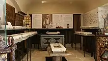 The New Wing of the museum opened in 1997, and was based upon the architecture of Antoni Gaudí.[38] The walls of the New Wing are made of Ryukyu limestone (coral reef fossils) from the Low Ryukyu Islands of the Japan's coral reef.[39][40] There is the "Tombodama Art Gallery", a shop selling original goods and itchiku tsujigahana-themed accessories, and an open-style cafe.