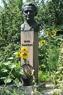 In 1993, the Ivanna Blazhkevych Literary Prize was established, which is awarded annually to Ukrainian writers in her native village on the writer's birthday.[8] The 16th unit of Plast and the Ternopil's General School of Economics Lyceum № 9 are named after Blazhkevych. In early December 2014, a bas-relief of Ivanna Blazhkevych by sculptor Ivan Sonsyadlo was unveiled on the wall of the lyceum school.