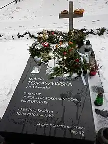 - 1 2 3 "Izabela Tomaszewska's funeral on Monday". Warsaw (in Polish). April 18, 2010. Retrieved 2023-11-13.