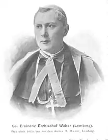 Archbishop Weber was born in a German Bohemian family of the colonists in Bukovina. After graduation from the school and gymnasium education, he subsequently joined the Faculty of Theology at the University of Lviv and the Major Roman Catholic Theological Seminary in Lviv. After that he continued to study in the Polish College in Rome,[1] where he was ordained as priest on June 7, 1873, for the Roman Catholic Archdiocese of Lviv,[2] while completed of the philosophical and theological studies. In time of his studies he wished to join the Resurrectionists, inspired by the Rector of Polish College Fr. Piotr Semenenko, C.R., but his Archbishop asked him to postpone his decision.[3]
