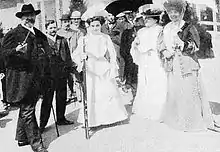 József Márkus (left) with sport shooter Sári Somló and his sister, actress Emília Márkus during an international shooting competition in Pestszentlőrinc in May 1905