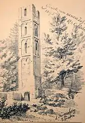 Beginning around 1351 the Rhäzüns family rebuilt the burned tower and added a palas to the north-west corner.[3] In 1378 they bought the nearby Herrschaft of Grünenfels and combined the two into the Herrschaft of Jörgenberg. They appointed vogts to administer the herrschaft for the following century. In 1458 Jörgenberg passed to the Counts von Zollern. The local farmers and villagers disliked the foreign Swabian Zollerns and refused to pay them homage and often rose up in rebellion. A little over a decade later, in 1472, the Zollerns got rid of the troublesome province by selling it to the Abbot of Disentis Abbey. Under the abbot the castle remained the administrative and judicial center of the herrschaft. A pair of stone gallows pillars were built near the castle for executions. In 1539 the Protestant Reformation swept through the area, eliminating much of the Abbey's secular and judicial power and forcing the Abbey to sell Jörgenberg to Mathias Rung von Waltersburg.[4] At that time the castle and church were still in good condition. In 1580 Mathias Rung sold the castle to L. Gandreya, whose family held it for more than a century.