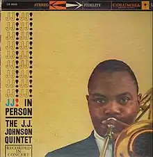 J. J. in Person! is an album recorded "in concert" by the J. J. Johnson Quintet which was released on the Columbia label.[1][2][3] This is a studio recording, but some release of the album, including the original release, feature over-dubbed applause and faked bandstand announcements.[4]