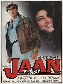 Jaan is a 1996 Hindi-language action drama film directed by Raj Kanwar and produced by Ashok Ghai. The film stars Ajay Devgn, with Twinkle Khanna, Amrish Puri, Shakti Kapoor and Suresh Oberoi. It was theatrically released in United States on 31 March 1996 and India as well as other countries on 17 May 1996. The film's soundtrack was composed by Anand–Milind. Upon release, it was commercially successful, grossing ₹17.20 crore (US$2.2 million) worldwide. The film was declared a "super hit" at the box office.