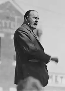 He was elected as a member of the New South Wales Legislative Assembly in 1913 for the district of Granville, serving as a backbencher in the Labor Party government led by William Holman.[14] When Prime Minister Billy Hughes twice tried to introduce conscription to the country in WWI, Lang sided with the anti-conscriptionist wing of the ALP. The mass defection from the ALP of parliamentarians and supporters who supported the military measure opened up opportunities and Lang positioned himself for advancement. His financial skills led him to become Treasurer in Premier John Storey's Labor government from 1920 to 1922. Due to the post-World War I financial recession, the state's accounts were in deficit; Lang managed to cut this deficit significantly. From 1920 to 1927, he was a member for the multi-member seat of Parramatta.