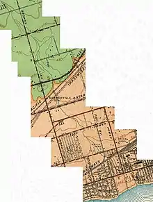 Jackson Creek is a watercourse that flows into Lake Ontario near 10th Street, in the New Toronto neighbourhood of Etobicoke, a suburb of Toronto, Ontario, Canada.[1] It is part of the Great Lakes Basin. Its headwaters were approximately five kilometers northwest—north of Bloor Street, near Highway 427.[2] Portions of the watercourse remain above-ground today.[3] The creek is named for Jackson Farm, the historical location of its mouth.[3]