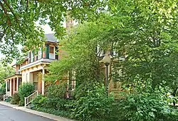 Jacob Hoffstetter arrived in Ann Arbor in 1854 at the age of five with his parents, Christian and Mary Hoffstetter; one of a large number of German immigrants who arrived in the area in the 1840s and 1850s. In 1872, Jacob Hoffstetter established a saloon and grocery on Main Street. Jacob, his wife, and his family lived above the store for some time. The business proved prosperous, and in about 1887 Hoffstetter sold the business and used the proceeds to construct this house. The home was large, and the Hoffstetters took on boarders. These included the men of the University of Michigan chapter of the Alpha Tau Omega fraternity, who boarded with the Hoffstetters from 1888 when the chapter was founded until 1894.[2]