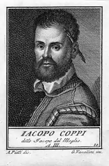 Jacopo Coppi, also called Giacomo Coppi[1] or "'Jacopo del Meglio'" ("the Best") (Peretola, 1546 – 1591) was an Italian painter, mainly active in Florence and Rome in a Mannerist style.[2] Other sources call him Giacinto Coppi.[3]