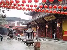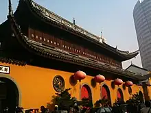 The Jade Buddha Temple (simplified Chinese: 玉佛禅寺; traditional Chinese: 玉佛禪寺; pinyin: Yùfó Chán Sì; Shanghainese: Niohveh Zoe Zy, literally Jade Buddha Chan Temple) is a Buddhist temple in Shanghai. It was founded in 1882 with two jade Buddha statues imported to Shanghai from Myanmar by sea. These were a sitting Buddha (1.95 meters tall, 3 tons), and a smaller reclining Buddha representing the Buddha's death. The temple now also contains a much larger reclining Buddha made of marble, donated from Singapore, and visitors may mistake this larger sculpture for the original, smaller piece.
