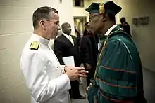 ![]() Admiral Mike Mullen, chairman of the Joint Chiefs of Staff, speaks with President Ammons at Florida A&M's commencement ceremonies in May 2010. | |