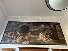 Between 1936 and 1942, Brooks participated in the Federal Art Project and the U.S. Department of the Treasury's Section of Fine Arts. By submitting design proposals to several competitions, he secured three significant public works commissions. These include the only original surviving mural: "Labor and Leisure", a 1938 work in New Jersey's Little Falls Civic Center.[2] A 1937 mural painted in a public library in Woodside, Queens[3] was destroyed in the 1960s. Between 1938 and 1942, he painted a 235-foot mural entitled "Flight" around the rotunda of the Marine Air Terminal at La Guardia Airport. The mural was painted over by the Port Authority in the 1950s but restored in 1980.[4]