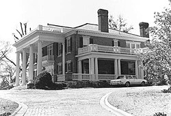 James C. Self House is a historic home in Greenwood, South Carolina, designed by local architect Thomas White Cothran (1874-1923) for textile magnate and philanthropist James Cuthbert Self (1876-1955) and built in 1917–1918. The house is a two-story, brick veneer Neoclassical style dwelling with a green Spanish tile hipped roof. It sits on a brick foundation faced with rock and an Ionic order portico that projects from the three central bays. The property includes a smokehouse/wellhouse and garage.[2][3]